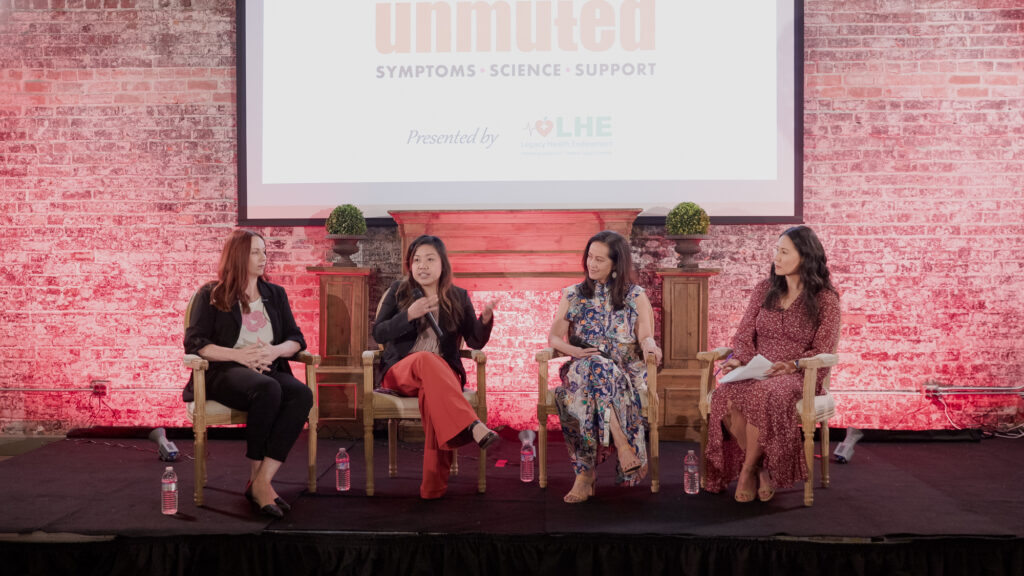 Dra. RaeLeigh Payanes, MD, Karen Rayos, MD, Dra. Tina Sogocio y la moderadora Jessica Chang Irish dirigieron un panel en Midlife Unmuted, un almuerzo y conversación reflexiva centrados en la menopausia y la perimenopausia.